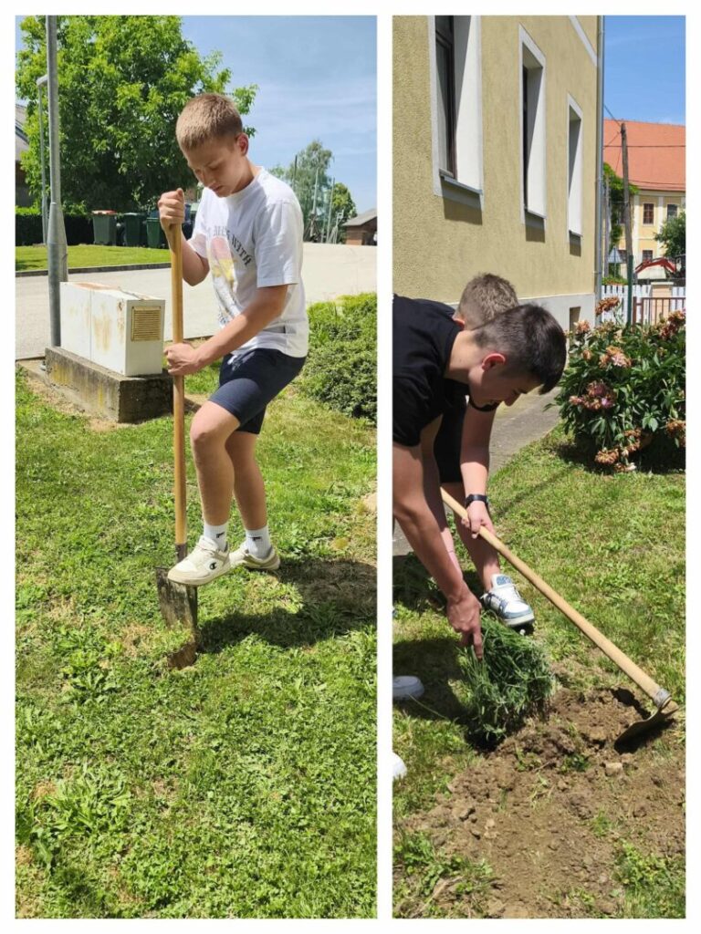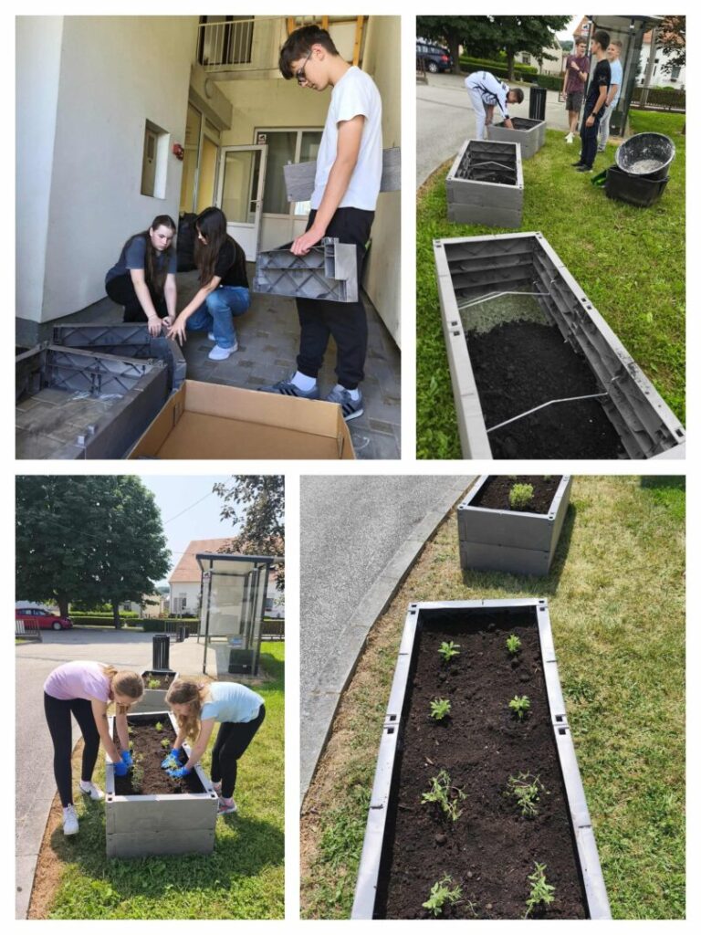Učenici su sastavili povišene gredice, napunili ih zemljom i posadili ljekovito bilje: timijan, origano, kadulju i bosiljak. Posadili su i lavandu.