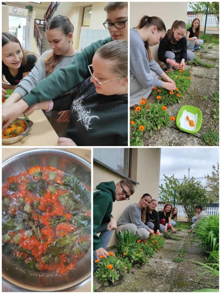 Učenici su ubrali neven u školskom vrtu i napravili nevenovu mast.