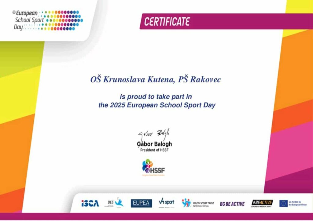 Europski tjedan sporta (ETS) inicijativa je Europske komisije za promicanje sporta i tjelesne aktivnosti pokrenut 2015. godine diljem Europe kao odgovor na sve veću tjelesnu neaktivnost europskih građana. Ministarstvo turizma i sporta kao nacionalno koordinacijsko tijelo pod sloganom #BeActive redovito potiče javnost da budu aktivni tijekom cijele godine, a ne samo tijekom tog tjedna. Europski tjedan sporta osmišljen je kako bi ljude diljem Europe i svijeta motivirao i pružao im više mogućnosti za tjelesnu aktivnost s ciljem podizanja svijesti o važnosti aktivnog način života kod svakog građana.