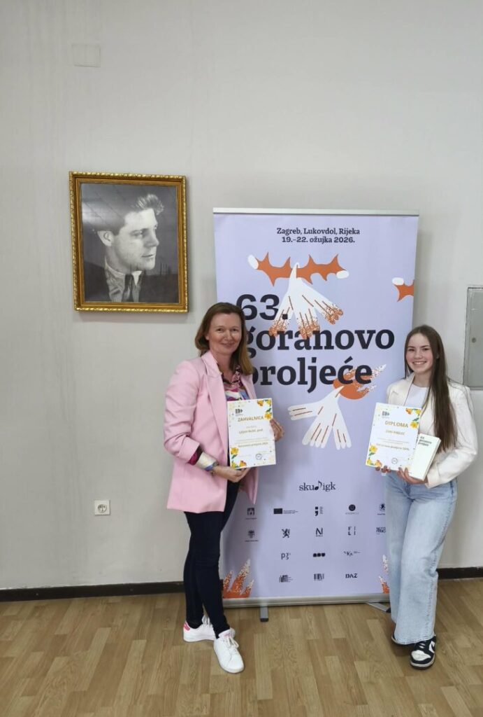 A sada je dobila krunsku nagradu – osvojila je 3. nagradu na natječaju Goranovo proljeće za najbolje hrvatske mlade pjesnike! Povjerenstvo je prepoznalo da Zarine pjesme: “Osvajaju svijetlim i nepretencioznim naslovima i temama i imaju jednu od važnijih osobina učeničke poezije: duhovitost i mogućnost odmicanja od sebe samog i primicanja čitatelju u svijetu teksta. Zara svoje pjesme ispisuje na mjesnom kajkavskom govoru, zbog čega joj stihovi zvuče spontanije i manje uštogljeno. Pa iako u njezinim pjesmama nema velikih novosti, čini se da je tako i na selu o kojem pjesnikinja piše i koje nas svejedno uvijek šarmira svojom dinamičnošću: Več i vrabci na granami znaju/da babica navek gda se rasrdi/ same veli: „Te čusnem!“/ Ampak nigdar to za hasnu ne napravi.”