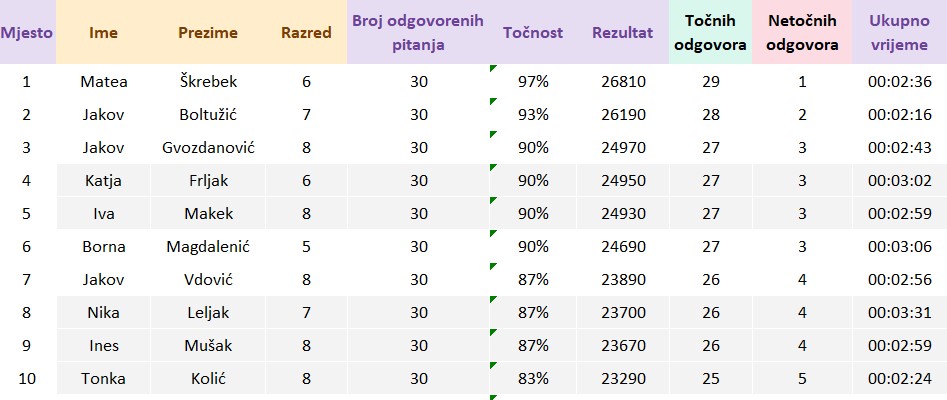 Pitanja su sastavile profesorice/učiteljice Suzana Matković i Milka Magić.