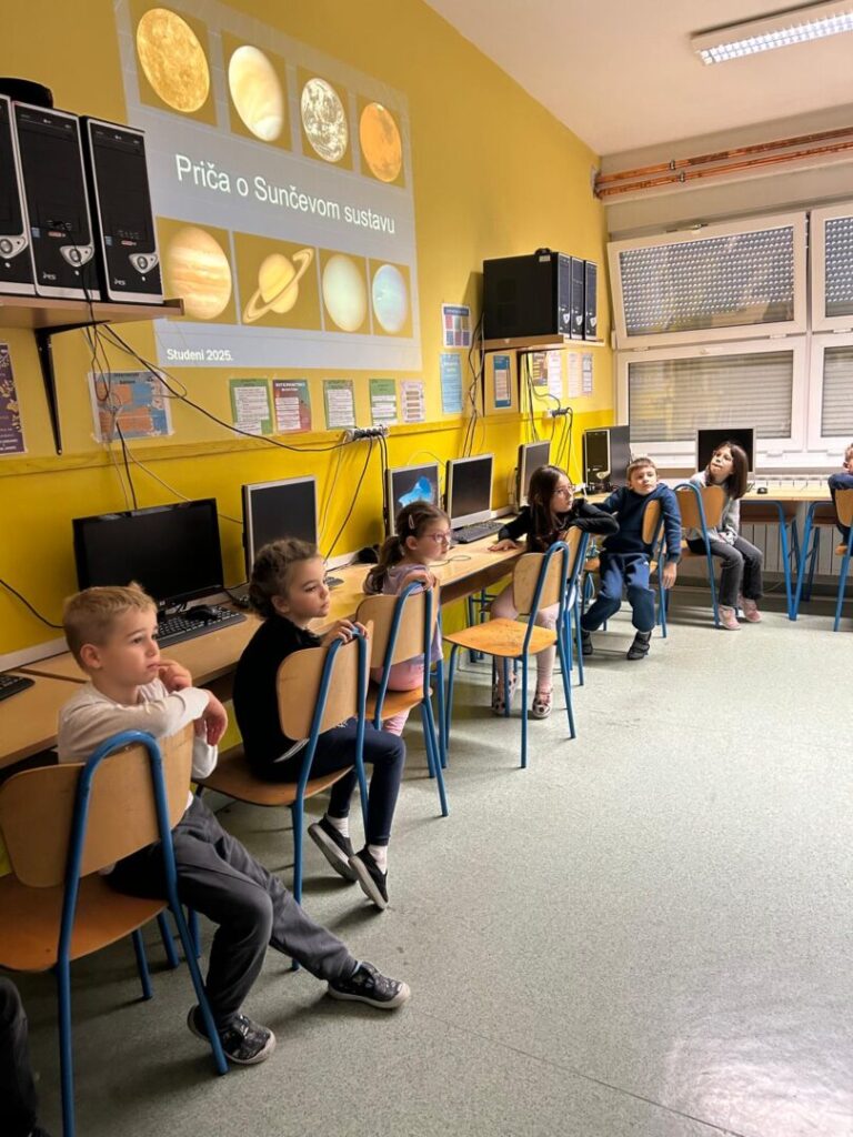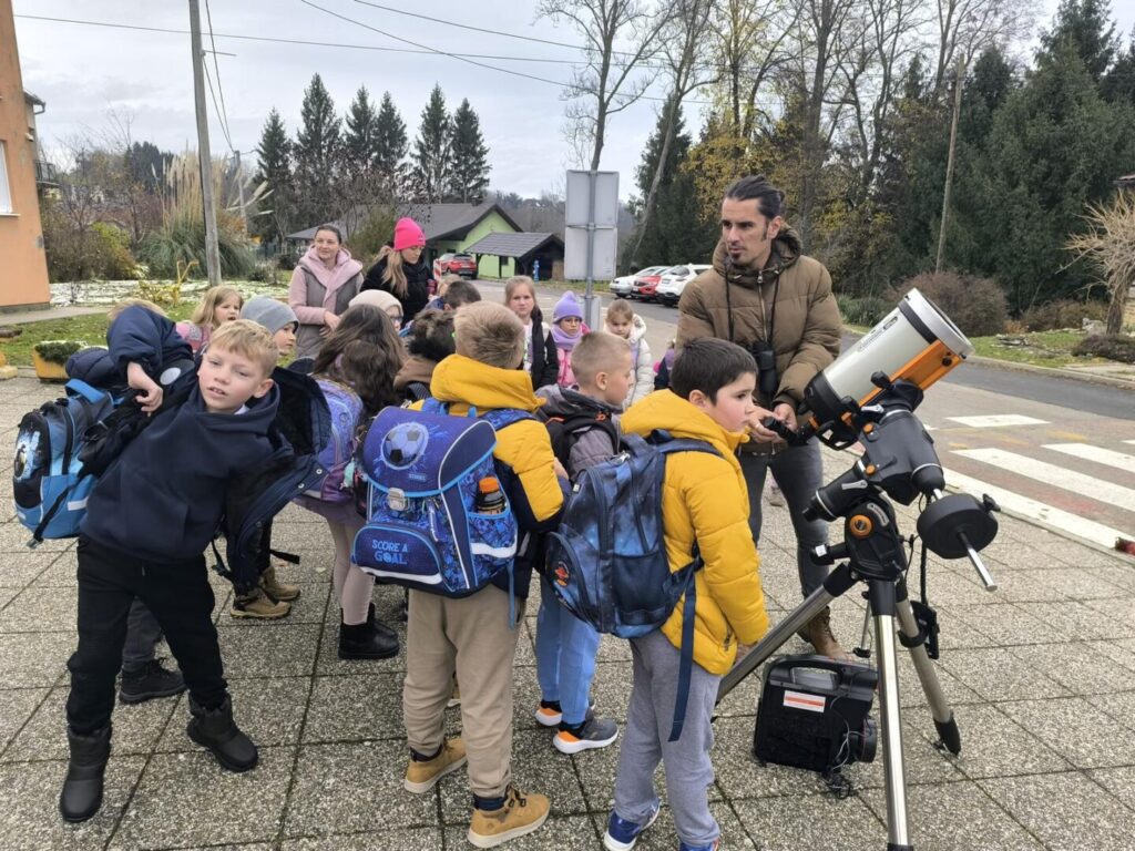 U ponedjeljak, 24.11.2025., učenici 1. i 2. razreda sudjelovali su u STEM radionici astronomije na temu snalaženja i koordinacije na nebu, opservacije Sunca, noćne opservacije neba i nebeskih tijela te astrofotografije.