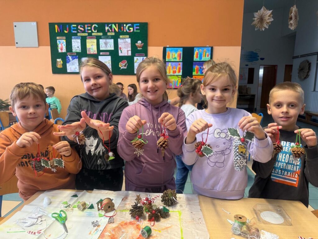 Stiže nam najljepše doba u godini i svi jedva čekamo krenuti s ukrašavanjem naše škole. Ove smo se godine odlučili za izradu božićnih ukrasa od prirodnih materijala. Svi su bili jako vrijedni i kreativni. Napravili smo mnogo ukrasa koje ćemo staviti na naš školski bor, ali nešto će nam ostati i za prodaju jer i ove godine odlučili smo sudjelovati na već tradicionalnom događaju – Presečkom adventu. Školu, a i bor, krenut ćemo ukrašavati 28.11., kad ćemo provoditi projekt Presečki prespavanac kojeg smo ove godine po prvi put odlučili provesti u našoj školi. Jedva čekamo!
