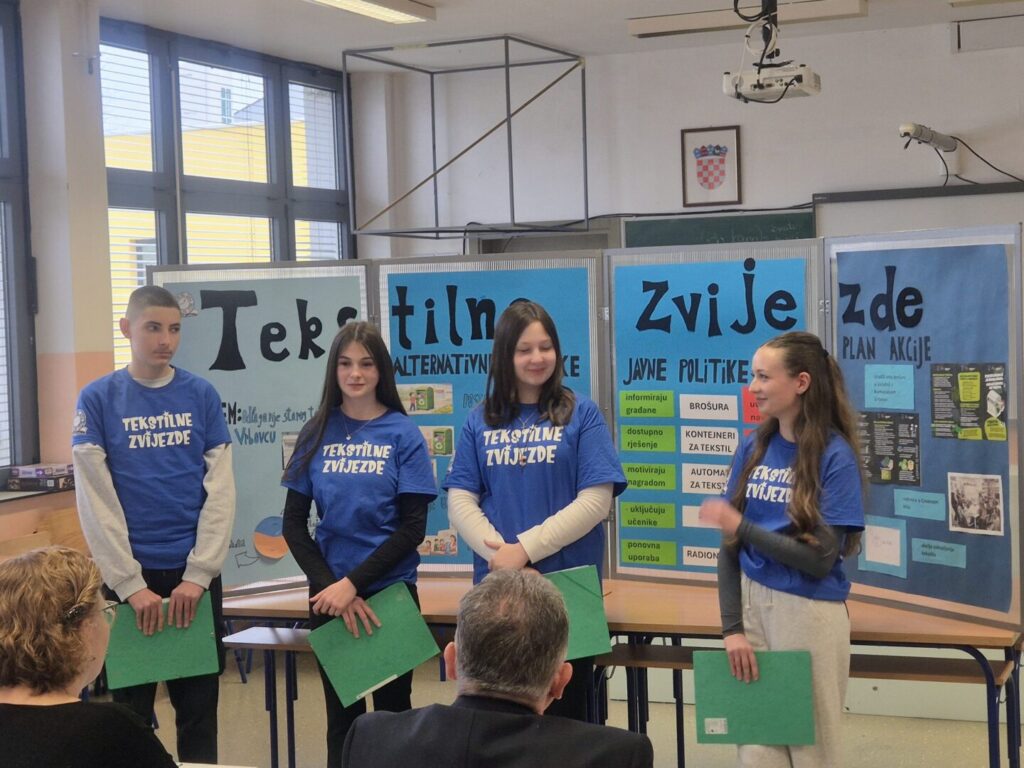 Tim Tekstilne zvijezde iz Osnovne škole Krunoslava Kutena, koji je svojim radom i zalaganjem ostvario izniman uspjeh te se plasirao na državnu smotru. Tim čine učenici 8. razreda Vedran Vodopija, Ema Kovjanović, Laura Leščić, Iva Makek, Karla Kralj i sedmašica Mia Hrgić. Ovaj rezultat potvrda je njihove predanosti, kvalitetne pripreme i izvrsne suradnje unutar tima.